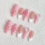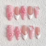 Embrace the tender elegance of spring with “Blossom Dream,” a press-on nail set that weaves together delicate florals and dreamy butterflies. Featuring a soft blush pink base, graceful white sculpted tips, and intricate 3D floral accents adorned with luminous pearls, this design evokes the image of blossoms swaying gently in the breeze. Shimmering butterfly charms add a touch of magic, making every movement feel like a flutter of light. Perfect for weddings, garden parties, or any moment when you wish to embody pure, romantic grace. Lightweight, reusable, and exquisitely enchanting — made for those who carry springtime in their hearts.🌸🦋✨