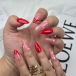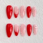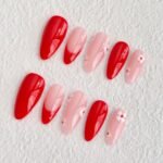 Celebrate the vibrant spirit of spring with “Blossom Rouge,” a press-on nail set that captures the beauty of blossoming flowers and the passion of vivid red hues. Featuring a striking contrast between glossy crimson and soft blush pink, each nail is delicately adorned with tiny hand-painted white florals, adding a playful yet graceful charm. Perfect for romantic dates, festive occasions, or simply to bring a splash of joyful energy into your everyday look. Easy to wear, reusable, and radiantly charming — made for those who love to bloom wherever they go.