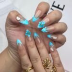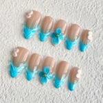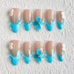 Surrender to the tranquil charm of summer with “Azure Breeze,” a press-on nail set that captures the pure serenity of a seaside morning. Featuring a soft nude base fading into cool aqua-blue sculpted tips, each nail is adorned with delicate 3D floral accents that shimmer like seashells kissed by the tide. Fresh, bright, and effortlessly graceful, this design evokes the peaceful rhythm of waves and the promise of endless blue skies. Perfect for beach getaways, tropical vacations, or any moment when you want to carry the ocean’s gentle touch with you. Lightweight, reusable, and soothingly beautiful — made for those who drift where the breeze takes them.🌴🐚✨
