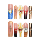“Celestial Devotion” is a radiant press-on nail set inspired by spiritual symbolism and vintage opulence. With luminous golds, deep gradient reds, oceanic blues, and baroque embellishments — each nail is like a relic of a secret love story. Heart-shaped gems, shining crosses, and golden roses offer a poetic balance of passion and purity. Whether you’re channeling divine femininity or just dressing your fingers for a night of drama, this set is your altar of expression.
