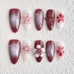 Step into timeless sophistication with “Crimson Elegance,” a press-on nail set that captures the allure of moonlit blooms and whispered secrets. Featuring a dramatic palette of rich crimson reds and luminous whites, this design showcases exquisite hand-sculpted florals, airy watercolor petals, and silky gradient finishes adorned with subtle crystal accents. Bold yet graceful, it’s perfect for romantic evenings, elegant events, or anytime you wish to embody refined passion. Lightweight, reusable, and stunningly luxurious — made for those who bloom most beautifully after dark.