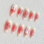 A dreamy press-on nail set kissed with blush gradients, silver outlines, and whimsical bunnies that twinkle like stars. Bunny Stardust feels like a sweet daydream — hearts, moons, sparkles, and charming bunny faces come together in a delicate galaxy of soft pinks and creamy whites. Perfect for those who love a little bit of cute, a little bit of sparkle, and a whole lot of charm.