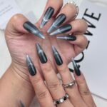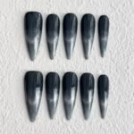 Midnight Radiance features a gradient of deep, dark black fading into soft silver at the tips, reminiscent of the night sky kissed by starlight. The subtle shimmer in the design reflects the twinkling stars, making each nail appear to glow with an ethereal, almost otherworldly aura. This set is ideal for those who appreciate minimalist beauty with a touch of cosmic charm. Perfect for formal events or a night out under the stars.