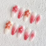 Step into a soft dreamscape with “Blush Garden,” a press-on nail set that captures the tender beauty of a pastel springtime. Featuring a creamy white base fading into delicate shades of rosy pink, each nail is adorned with hand-sculpted flowers, playful red dot accents, and dewy droplets that sparkle like morning dew. The design radiates a pure, youthful charm — perfect for spring outings, garden picnics, or any moment when you want to wear a whisper of joy on your fingertips. Lightweight, reusable, and endlessly enchanting — made for those who bloom gently and brightly.🌸✨