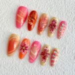 Dance into a vibrant celebration with “Sunset Garden,” a press-on nail set that captures the intoxicating energy of a summer carnival. Featuring a fiery blend of hot pinks, sun-kissed oranges, and creamy yellows, each nail bursts with hand-crafted 3D florals, shimmering rhinestone accents, and playful waterdrop textures. The bold colors and lively designs evoke a sky ablaze at sunset, the beat of distant drums, and the thrill of endless summer nights. Perfect for festivals, beach parties, or whenever you want to light up the world with your spirit. Lightweight, reusable, and wildly captivating — made for those who live in full color.🌞🌺🏖️