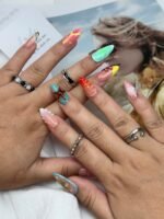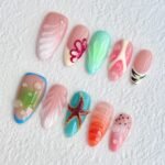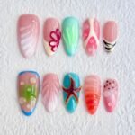 Dive into a whimsical underwater paradise with “Coral Dreamscape,” a press-on nail set brimming with tropical charm and oceanic wonder. Featuring a playful mix of coral pinks, aquatic blues, and lush greens, each nail showcases intricate details like 3D bubbles, sculpted leaf textures, and a charming starfish centerpiece. The fluid lines and luminous finishes evoke the magic of coral reefs bathed in sunlight, perfect for beach getaways, summer adventures, or simply bringing a splash of joy to your everyday. Lightweight, reusable, and bursting with life — made for dreamers who find beauty beneath the waves.